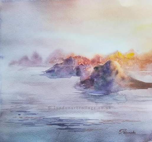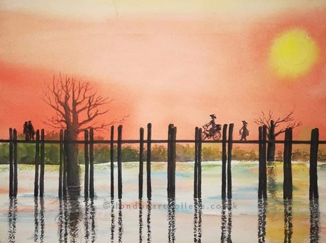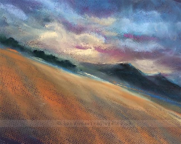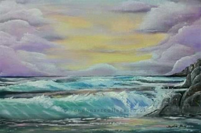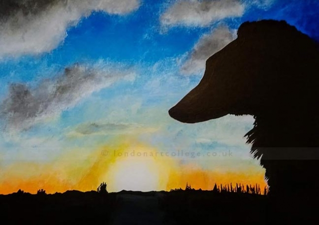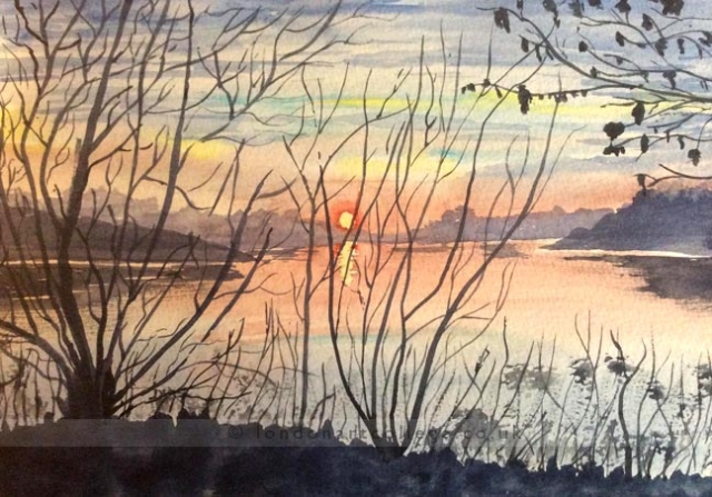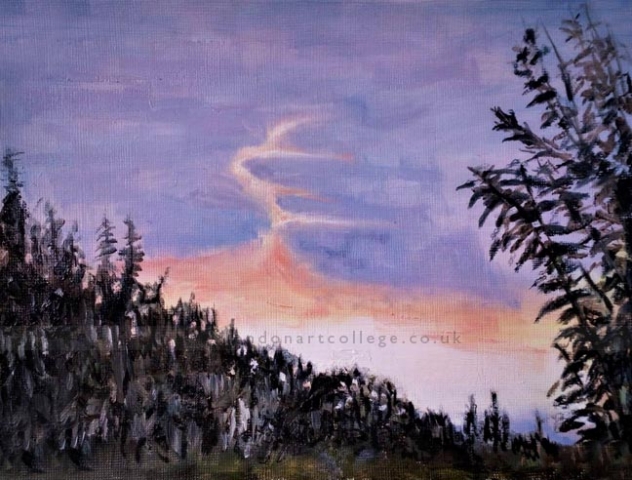 Jill Allsopp created the sunset in oils on canvas and said .. “I love these challenges, they give me something relaxing to do in between concentrating on drawing for the course I am on.”