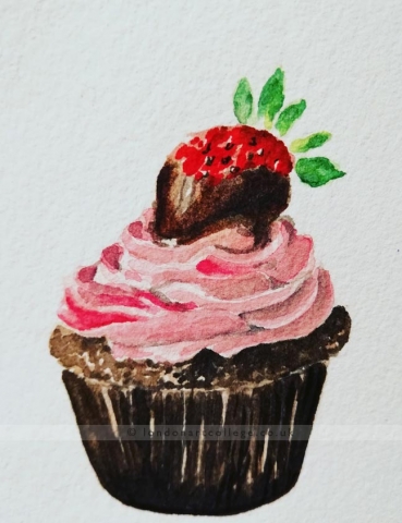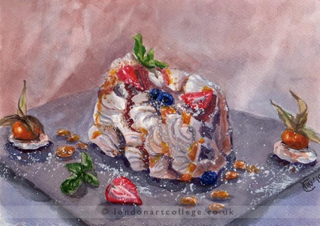 “Pavlova is my favourite cake! Weekend challenge. A4, watercolor, white acrylic.” We love Pavlova too Tatiana and your painting is superb and scrumptious!!