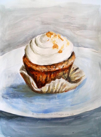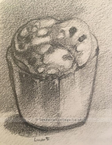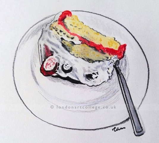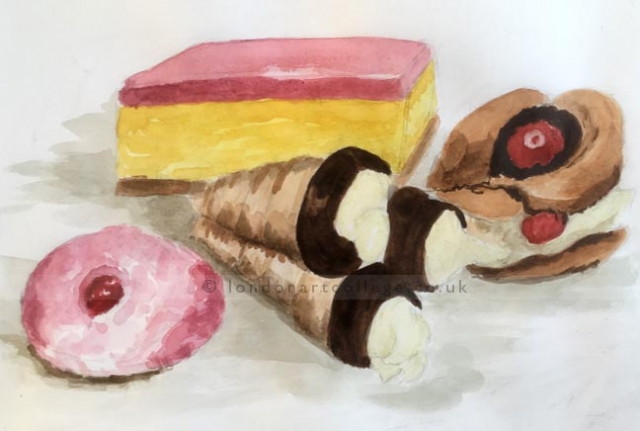 Sheila Brown said – ‘one cake was just not enough’.. and we agree with her wholeheartedly! We have had lots of cupcake paintings and drawings. Take a look at Jayne Burden, Fabiana Ribeiro, Katherine Peverelle, Marc Davis and Maria Ei Zar’s wonderful pieces. Luca Antinori who is studying our Life Drawing & Painting course has drawn a small Panettone.