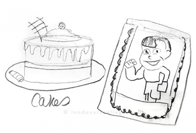 Both Audrey Quinton and Alfred Reid are studying on the Cartooning course and have both entered their versions of cakes, Audrey sending in two.