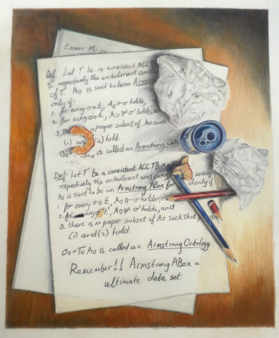 I am currently taking the Coloured Pencil Drawing Course. Both of these drawings have been done using Luminance and Polychromous. The tree in the Lake District took about 50 hours and the exam preparation took about 35 hours. The tree is done on Acquerello Artistico Fabriano Hot pressed 300gsm 23 x 30.5 cm and exam one is done on Bristol Vellum 500 series 30x24cm.