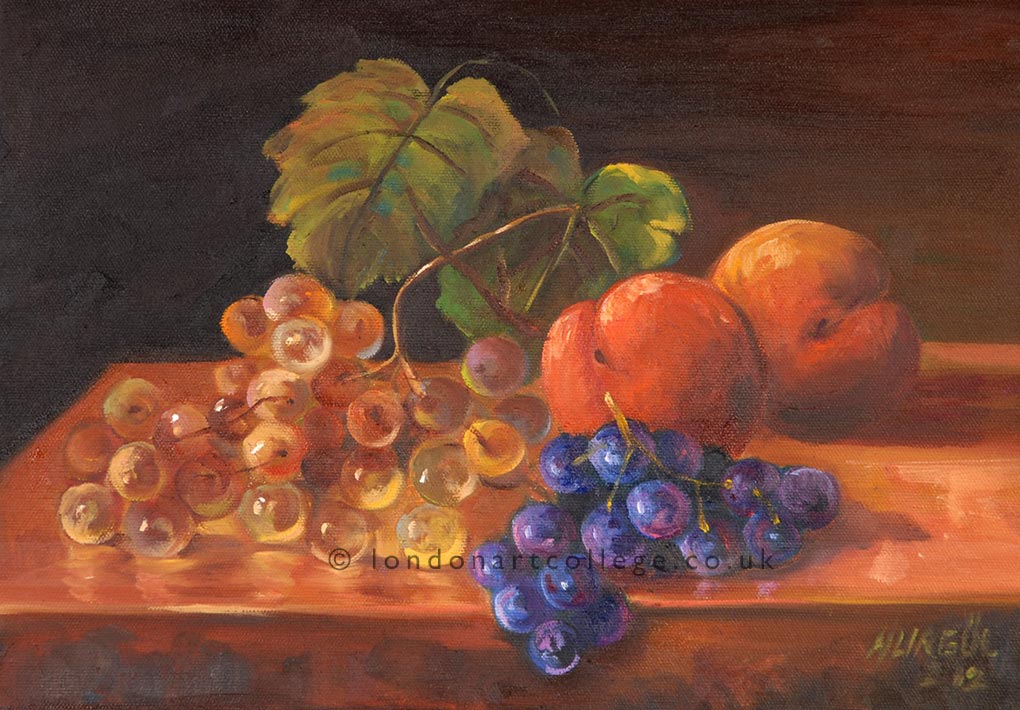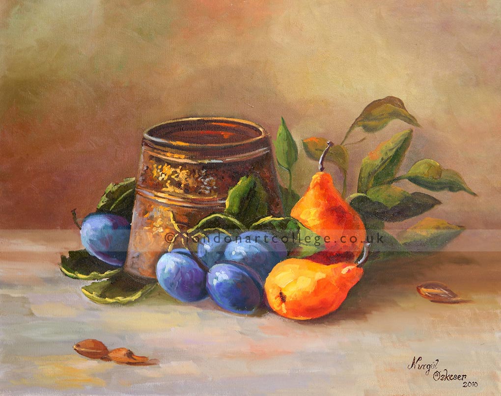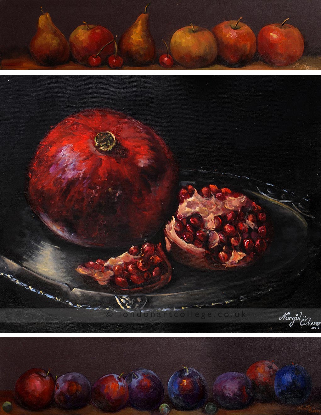 Are you inspired by Nurgül’s stunning paintings? Here are a few pointers for students looking to try their hand at painting fruit and still life compositions:
