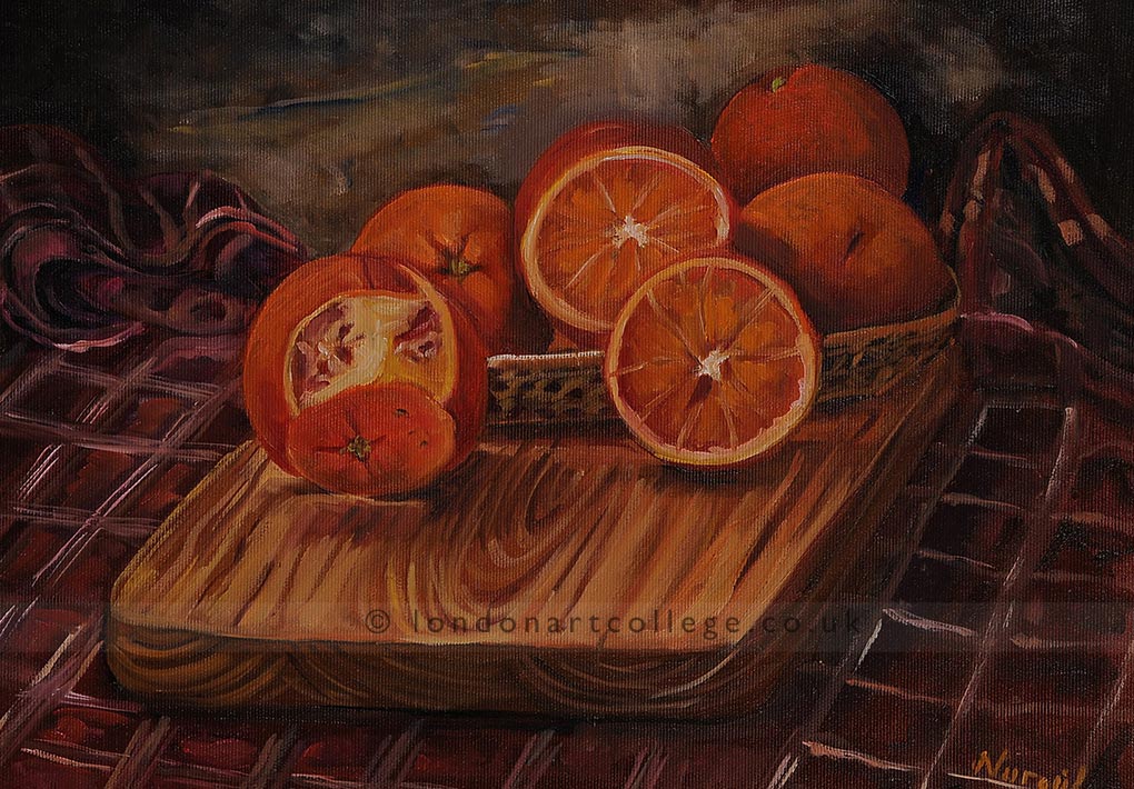 We are thrilled to feature some beautiful artwork by one of our talented students, Nurgül Özkeser, on the blog today. Completed outside of her formal studies, Nurgül’s paintings of fruit and still life subjects showcase her amazing skills as a painter.
