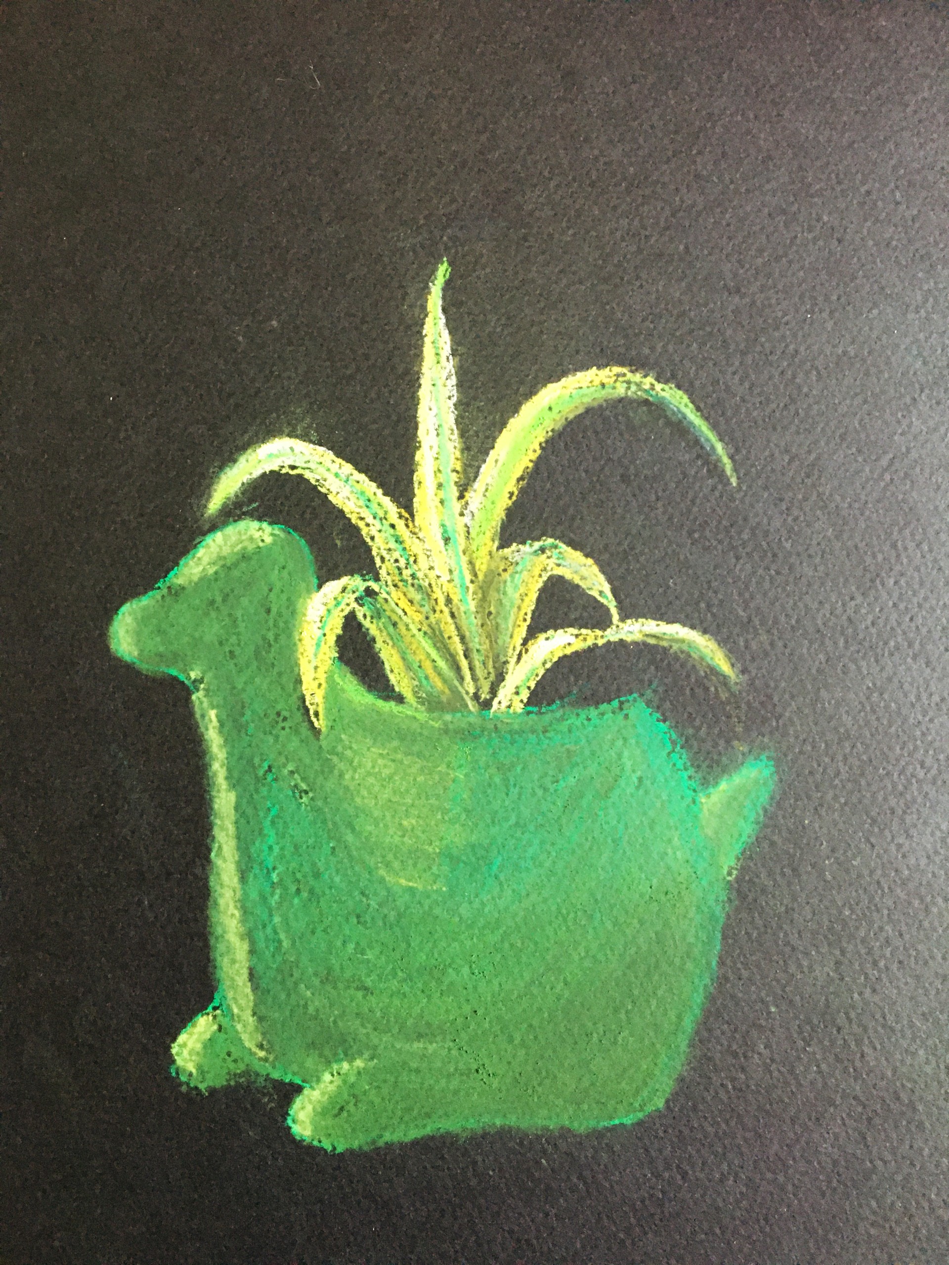 Pastel.  Baby spider plant.