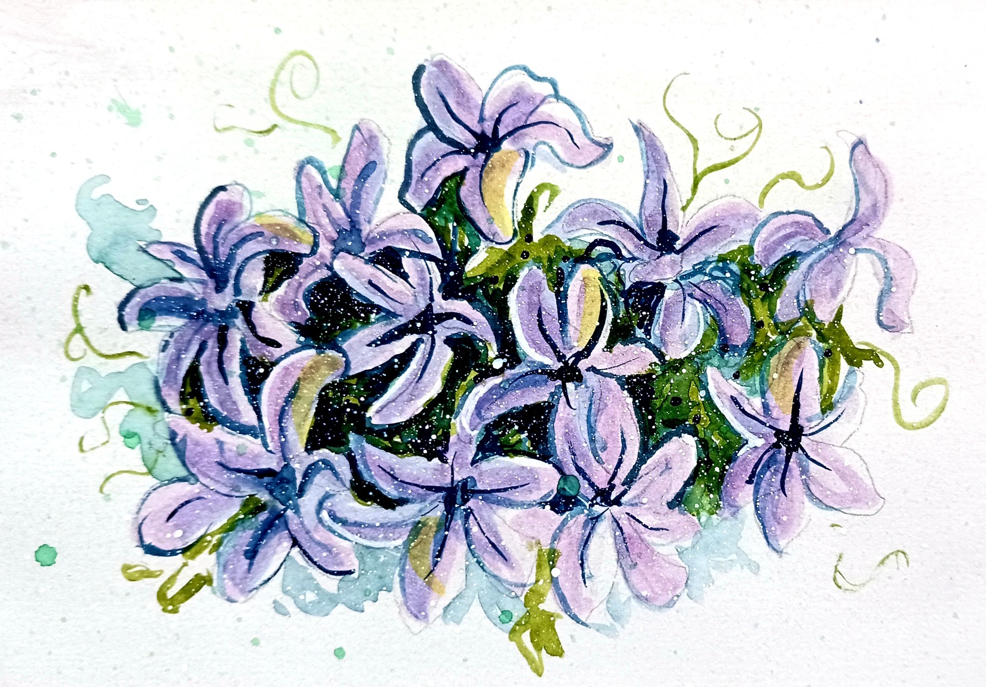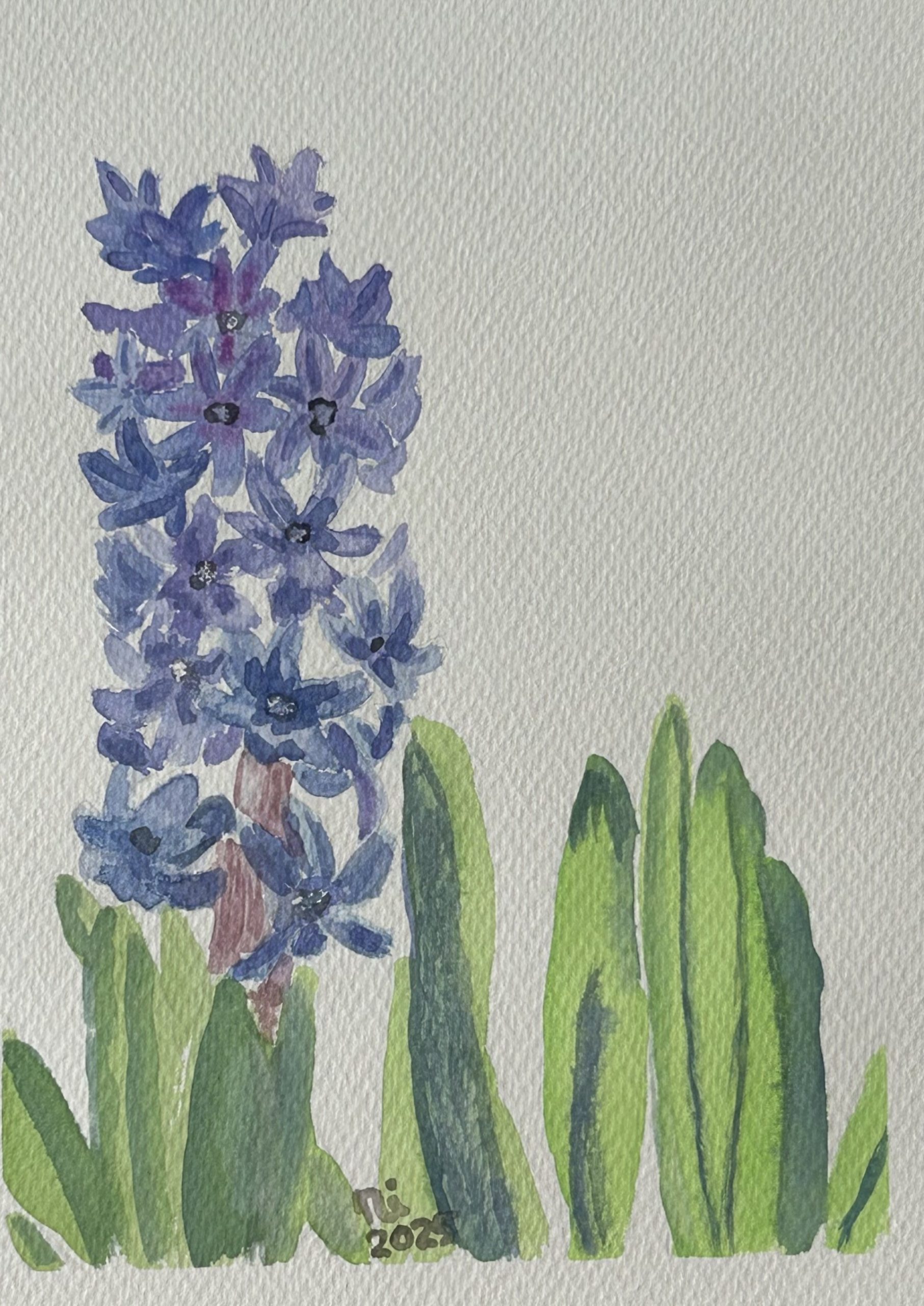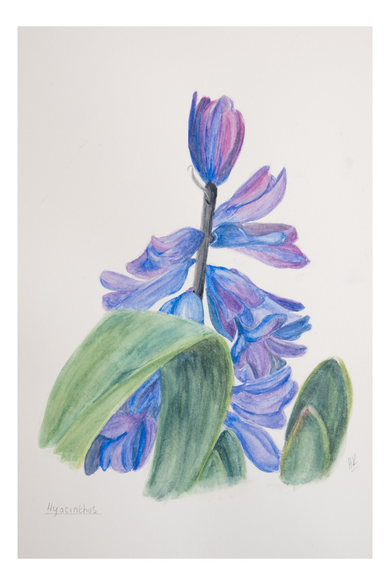 I was inspired by my colleagues painting and drawing of Hyacinths. This is my version with watercolour. Colour used: ultramarine, cerulean blue, purple, Payne’s grey, alizarin crimson, leaf green. I decided not to go too much details.