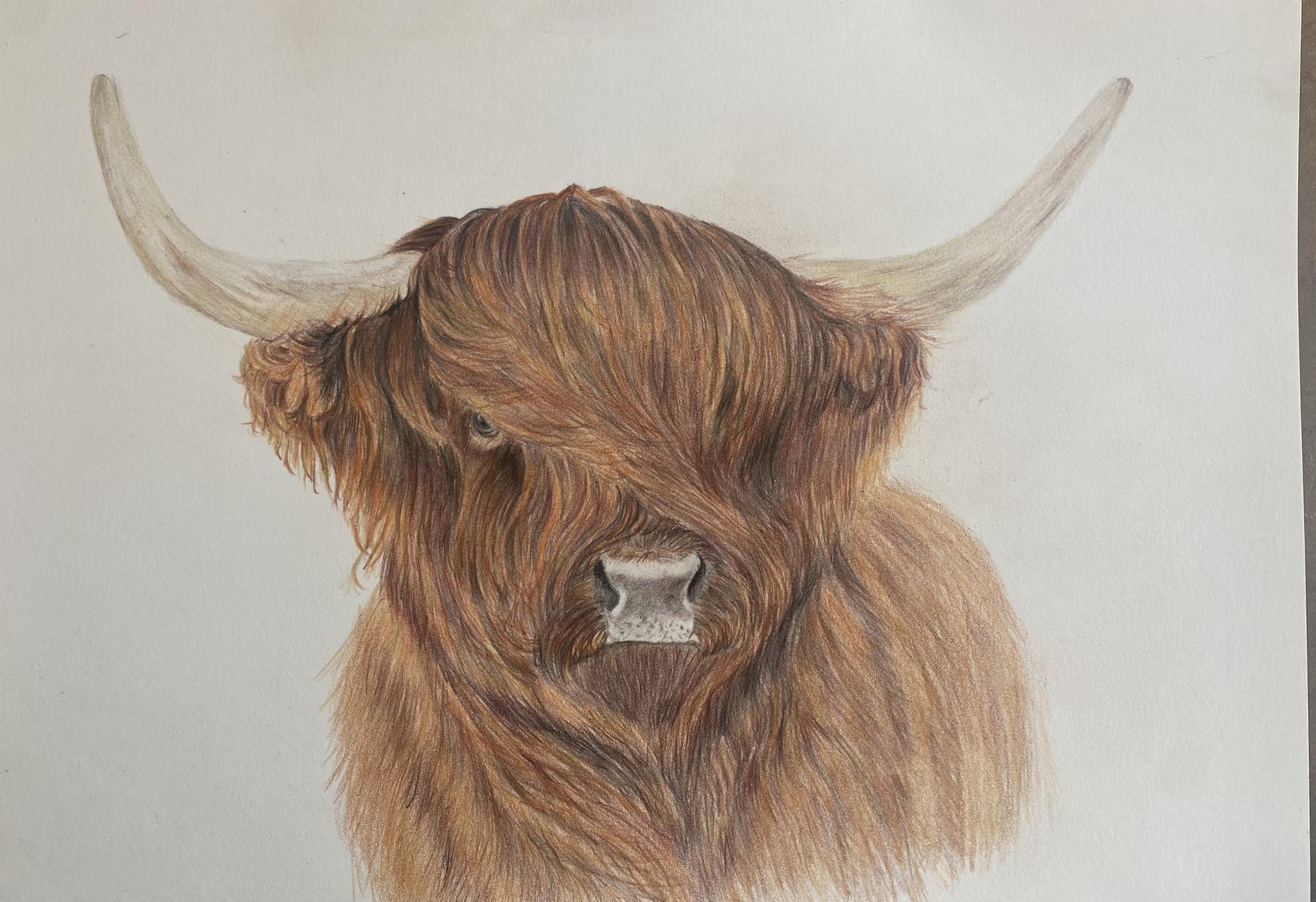 Weekend Challenge Highland Cow ! In colour pencil on Hot pressed paper