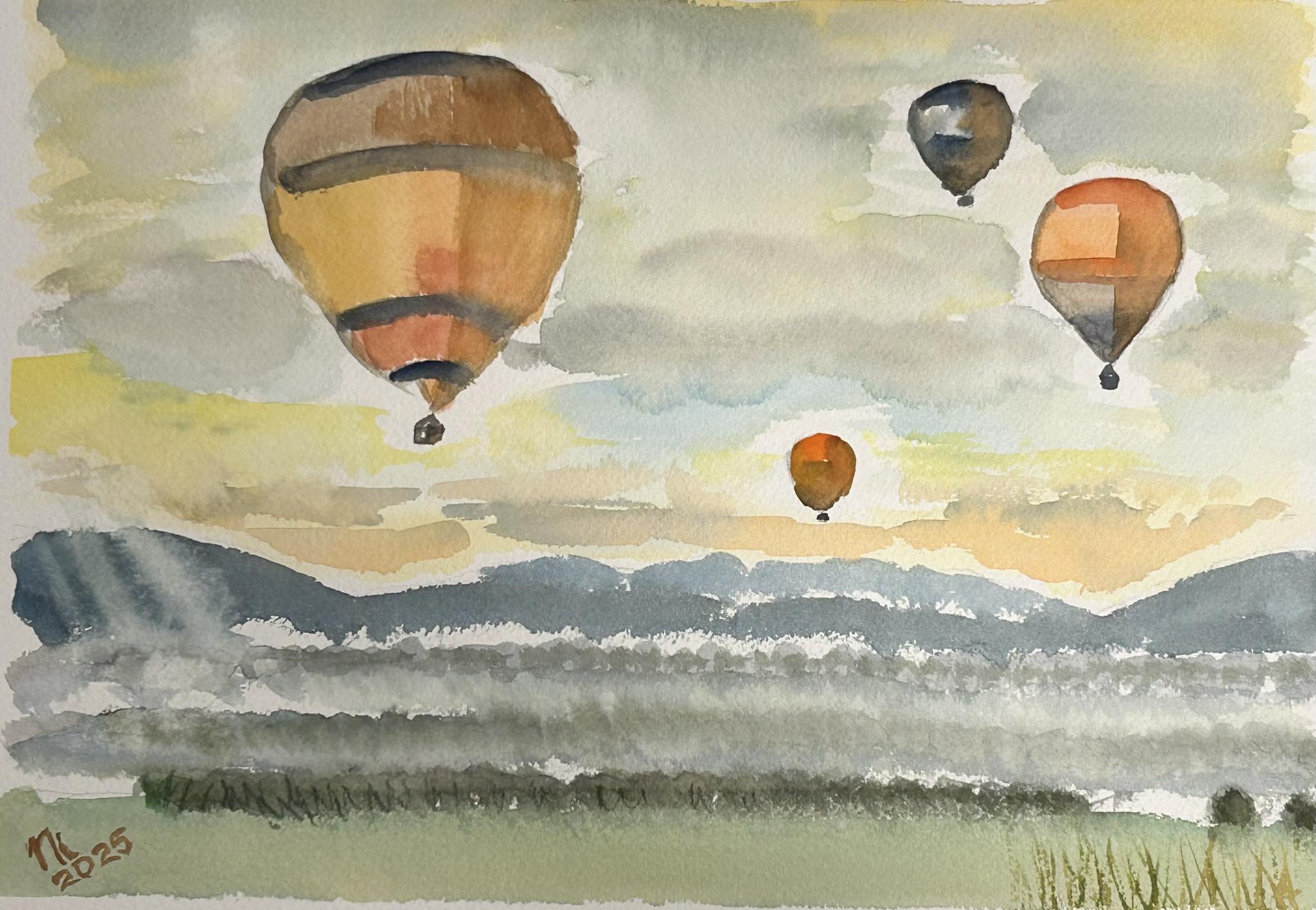 Hot air balloons, thank you LAC for beautiful reference photo. This is with watercolour on 10x 14 in CP watercolour paper. I decided to leave quite loose and didn’t go details.