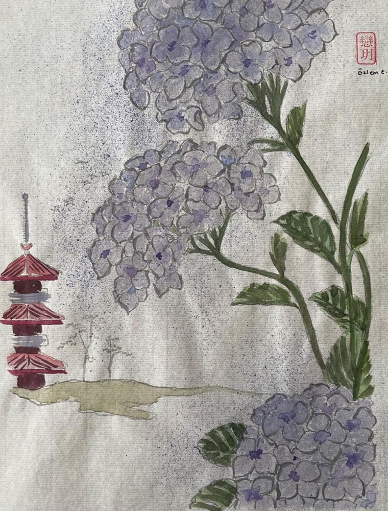 Hydrangea – After Hiroshige’s series Thirty-six Selected Flowers – Japanese Watercolour on washi paper