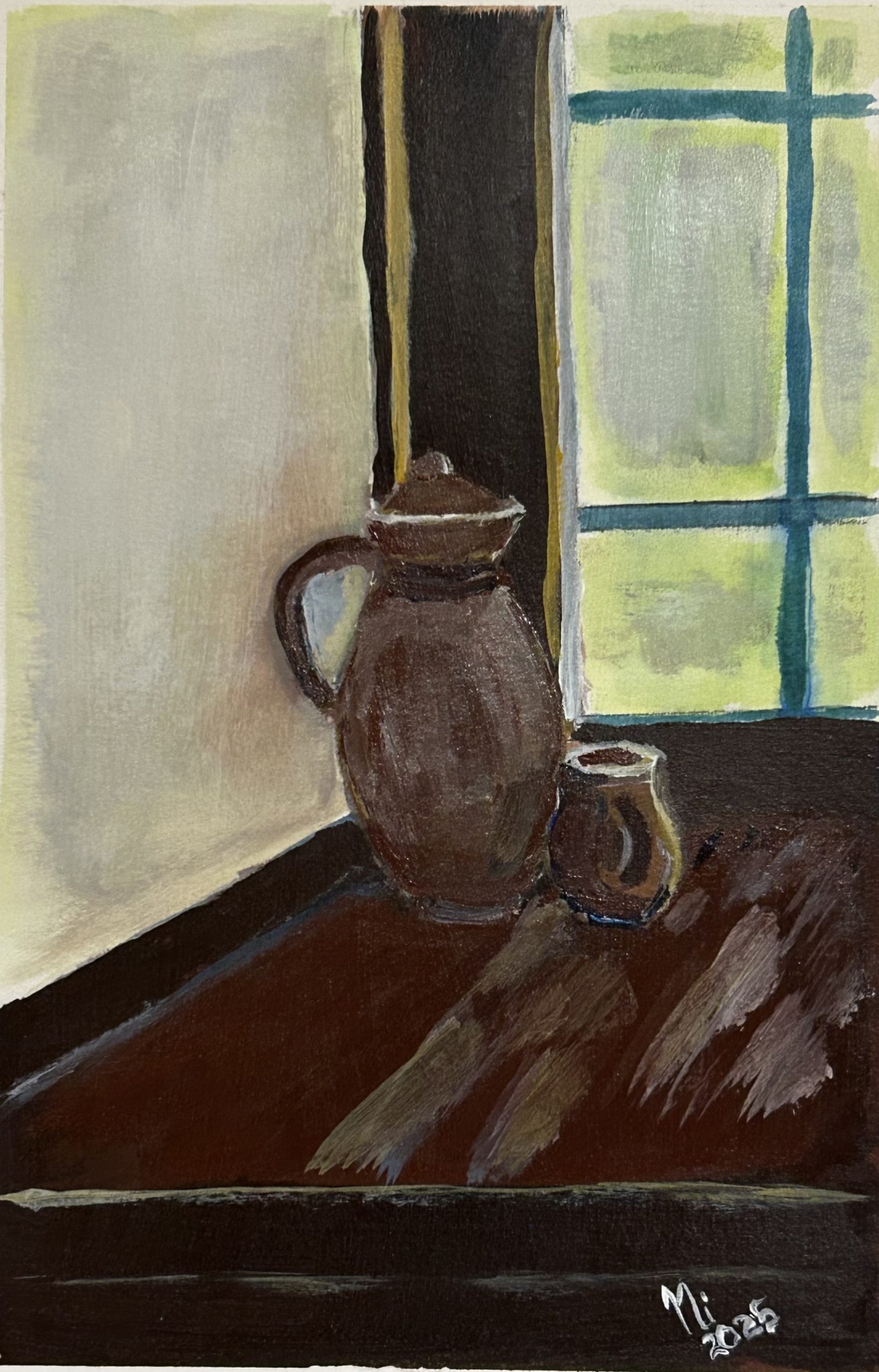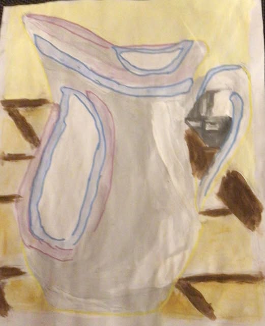 We had a great mix of ideas from jellyfish, jaguars, jam jars, jugs and a jigsaw puzzle! Even an incredibly old jug found in antarctica. Scroll down to see Linn’s drawing of it. Some artists chose to work in colour, others in pencil or ink. Every piece showed thought and care in how the subject was approached and presented.