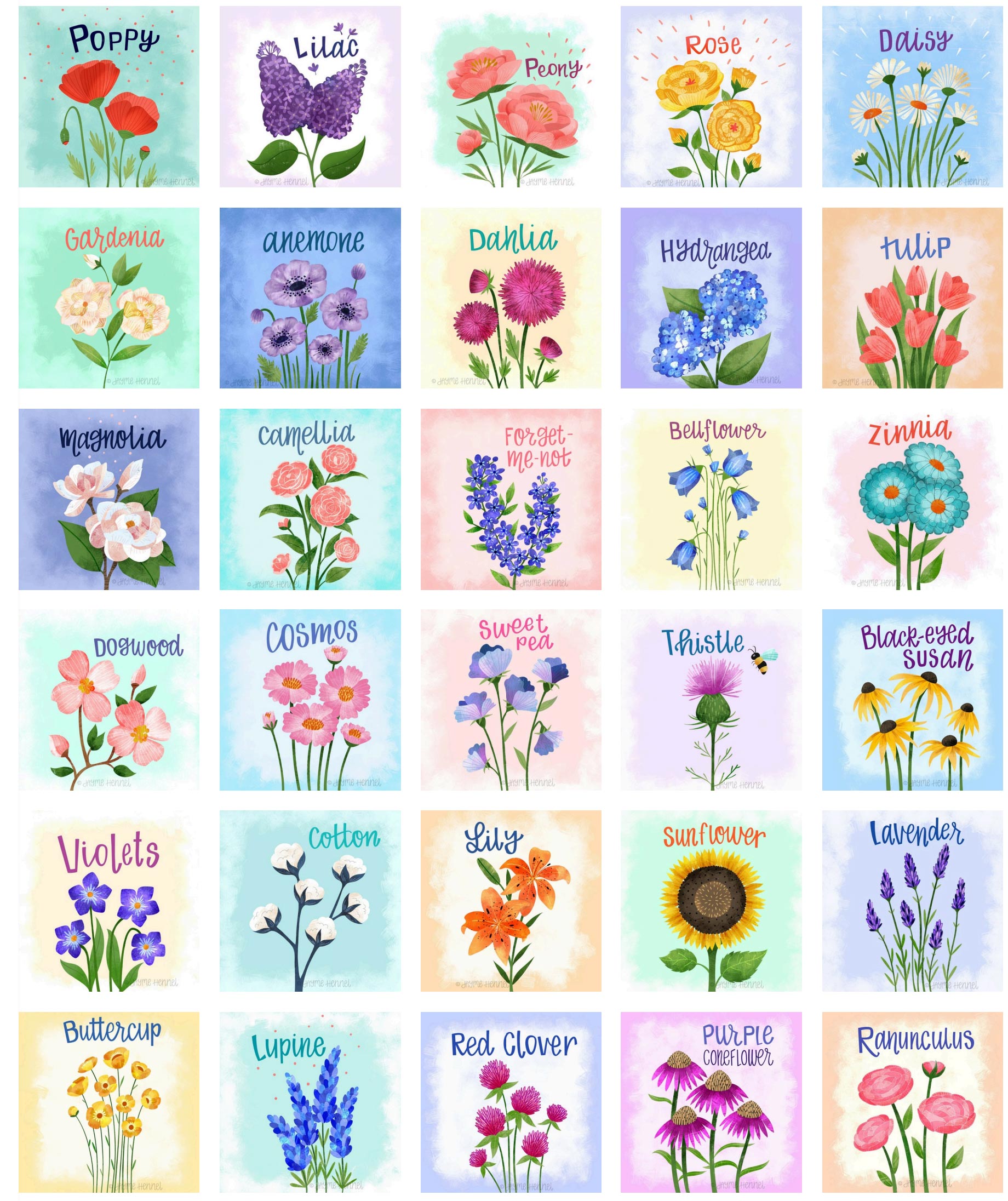 Bonus challenge – if you’re able, try to add the name of the flower somewhere in your piece. You can handwrite it, print it, stencil it, stamp it – however you like.