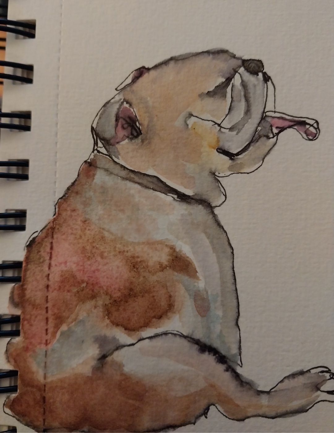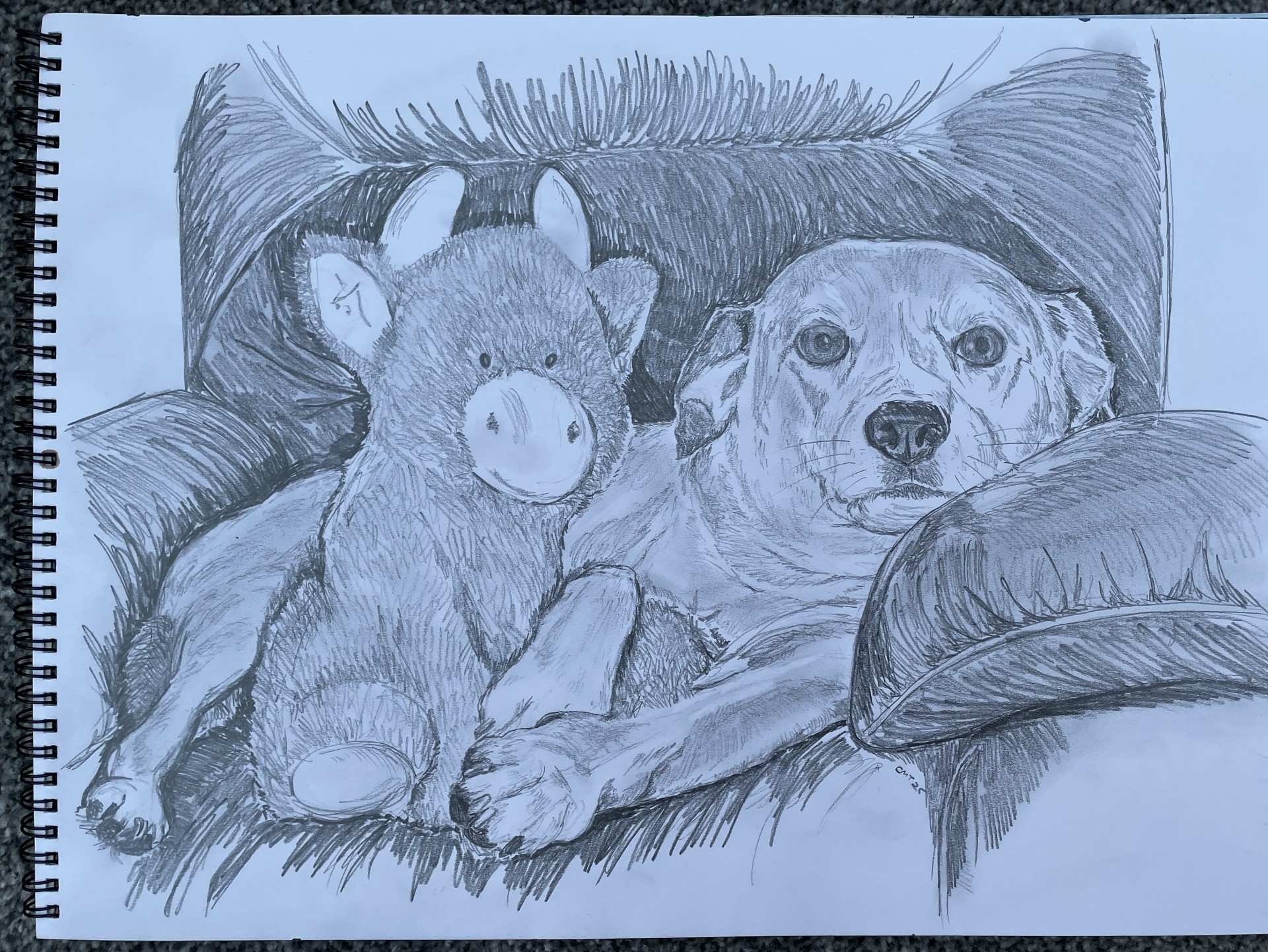 She’s lying on her chair with her favourite toy, I found it hard to get the fore shortening of her legs, but am pleased with her main front leg especially!!