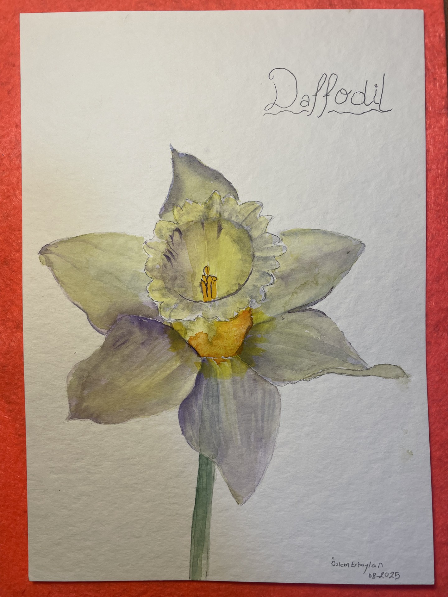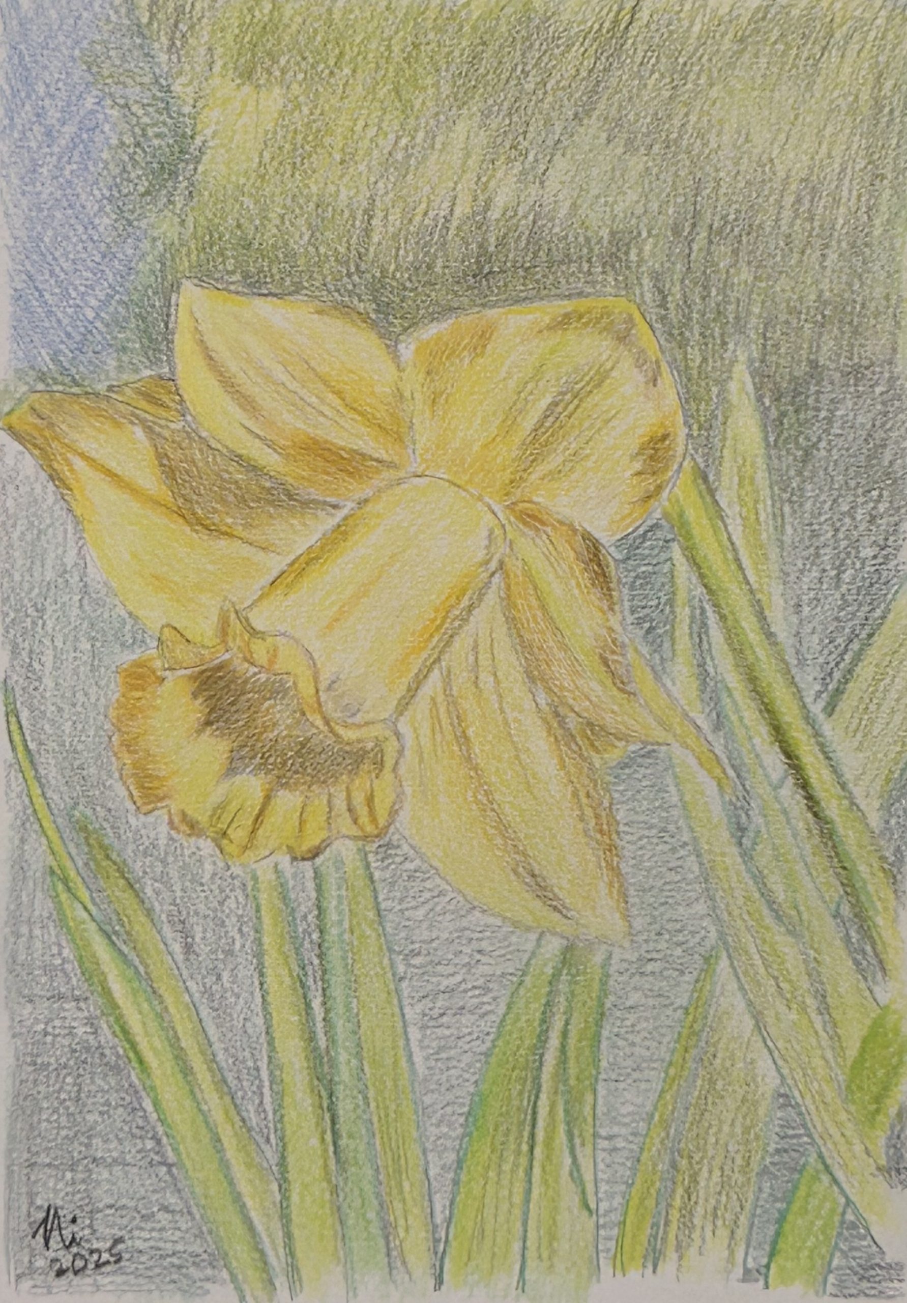 Daffodil with coloured pencils and graphite pencil on mixed media paper.