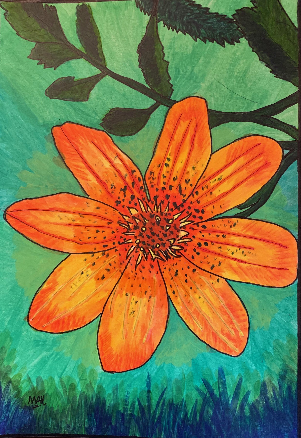 I’ve painted the Dahlia from my garden in acrylic and ink.