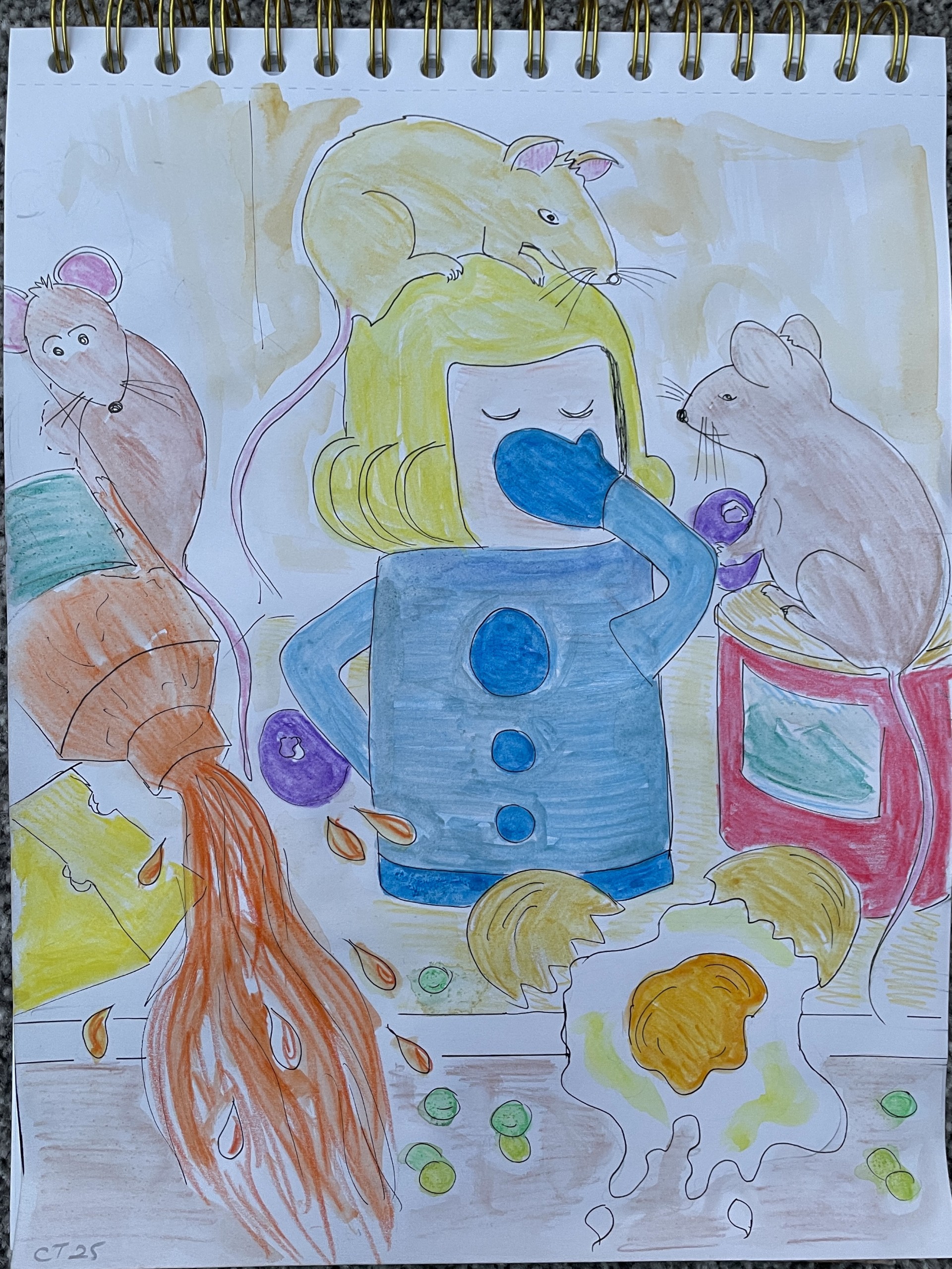 I’m attaching a video file, with a very short animation that I made for this week’s challenge. I’ve just started learning how to use this animation program (Krita), so please forgive its rudimentaritiness. Paper is so much easier to manage than this digital pen!!!! Alicia…
