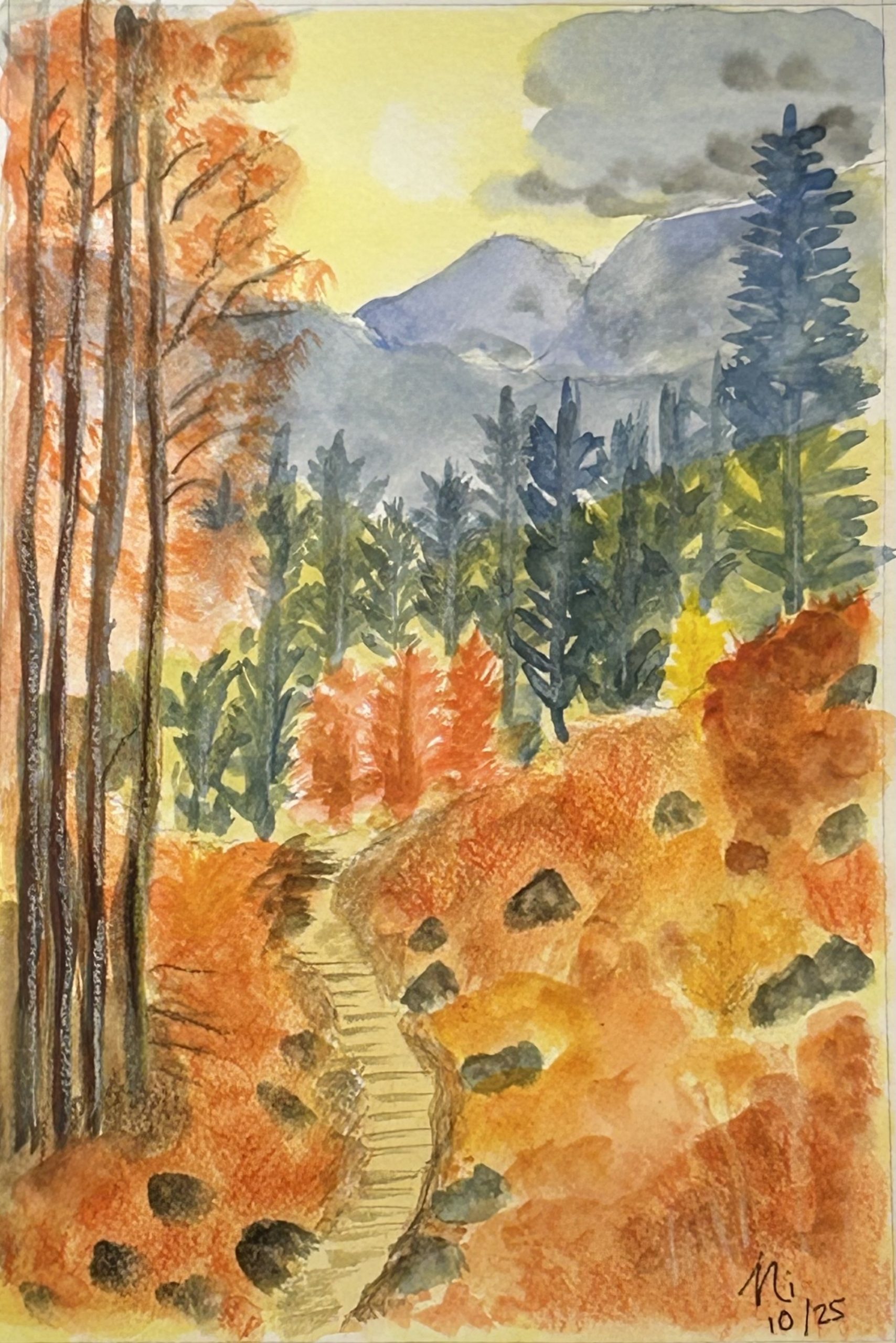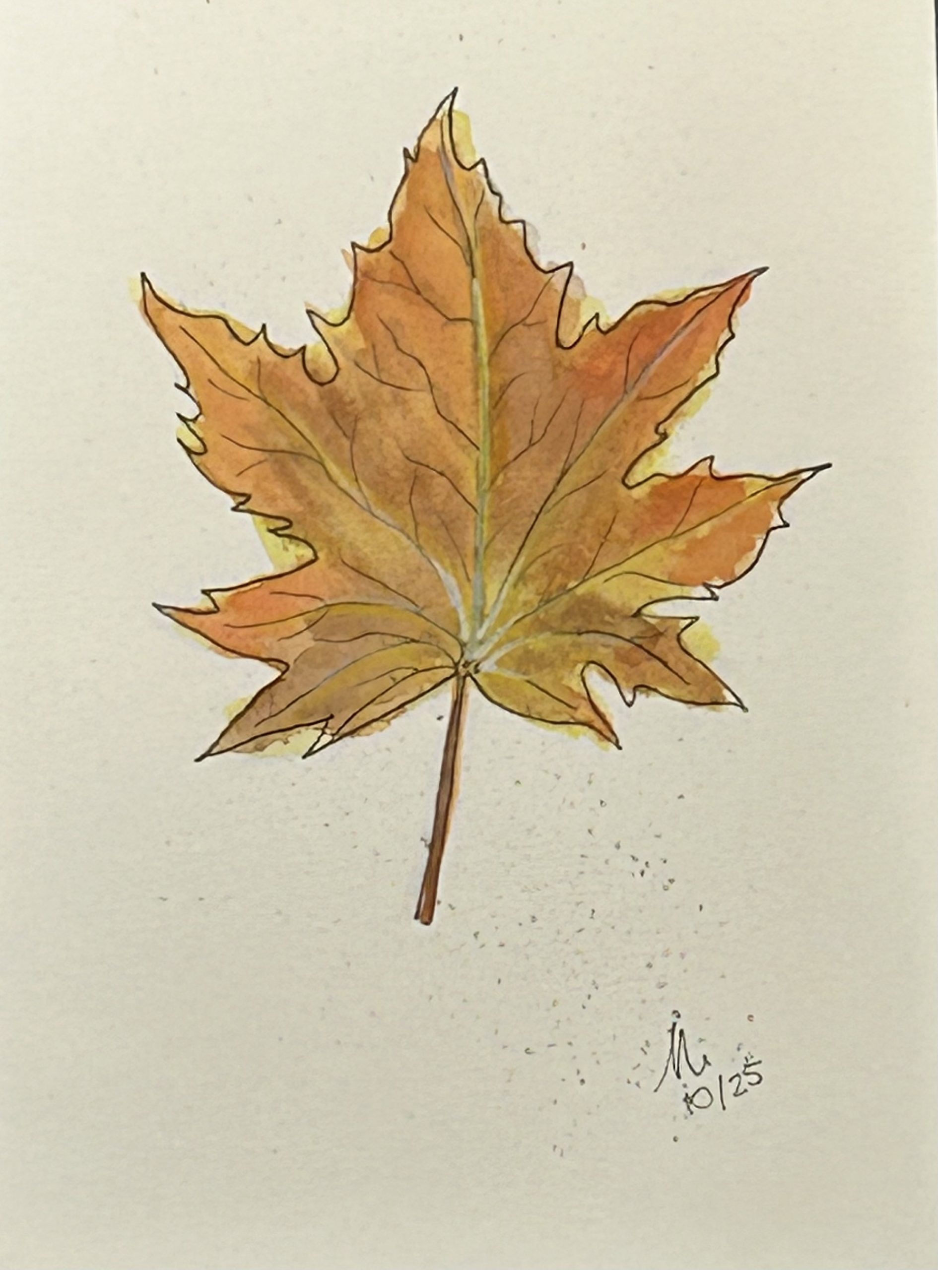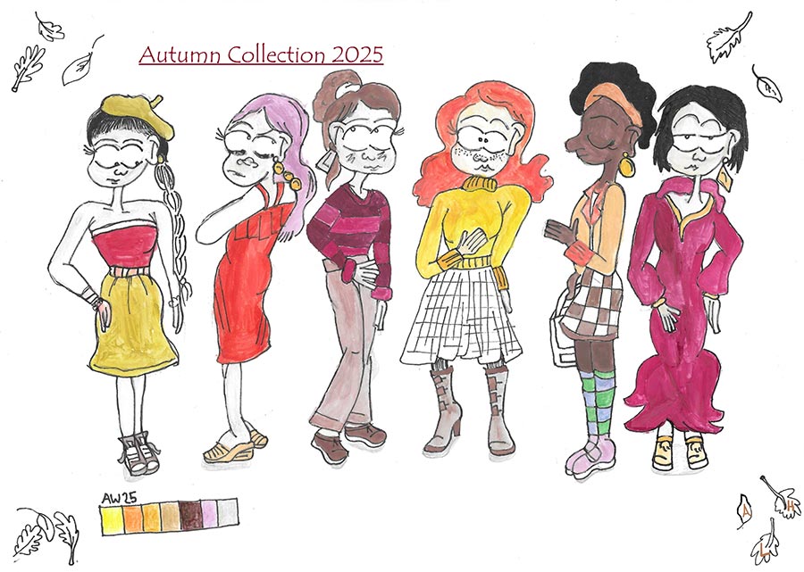 Watercolour and marker pens on thick watercolour paper, composed from memory of fallen leaves under autumn trees. LindsayAutumn Colours Ozlem ERosalind: water colour: autumn colours: vine leaves at the end of the season! NurgülSketch with a black pen and coloured with watercolour and pastel pencils in A5 sketchbook. Ni NiI’ve drawn a woodland scene with autumn colours. The drawings of the leaves were freshly fallen and are pinks, purples green and yellow. There’s a little friendly hedgehog curled up amongst the leaves. I’ve used mixed medium: crayons, acrylic paint and pens were used. Hedgehog was added for cuteness. Nina PThere is a beautiful Continus (smoke tree) near my home. In the Autumn, its beautiful red leaves start to fall and change to endless varieties of reds, yellows, oranges and greens. I love drawing them. Heather A fun collection of cartoon fashions inspired by autumn colours, painted with watercolour. AubreySketch with a black pen and coloured using pastel pencils in A5 sketchbook. Ni NiAutumn colours. My small Acer Palmatum on my rockery. Gouache on fine, handmade paper Dinah BThese fall colors were painted with an ink liner, graphite pencils, and Derwent watercolor pencils. I was looking to do something folkartsy. LinnAutumn leaf: mixed media- watercolour, black and white pens and yellow pastel pencil. Ni NiWatercolour and pastel pencils on A4 CP watercolour paper. Ni Ni