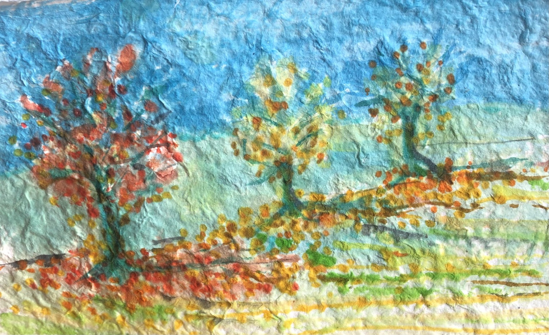 Some pieces are vibrant and bold, filled with oranges, reds, and golds where others are more muted and atmospheric, capturing the quieter side of autumn. There’s a lovely variety of subject matter too, all united by that distinctive autumnal palette.
