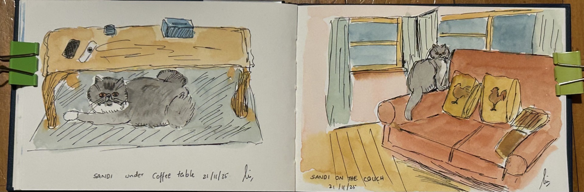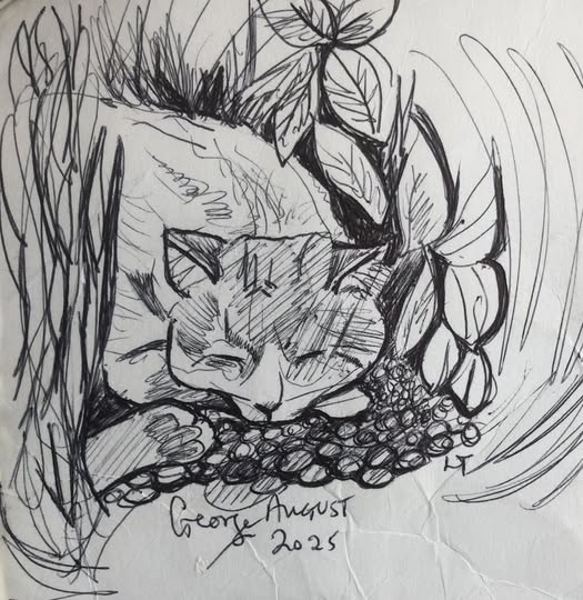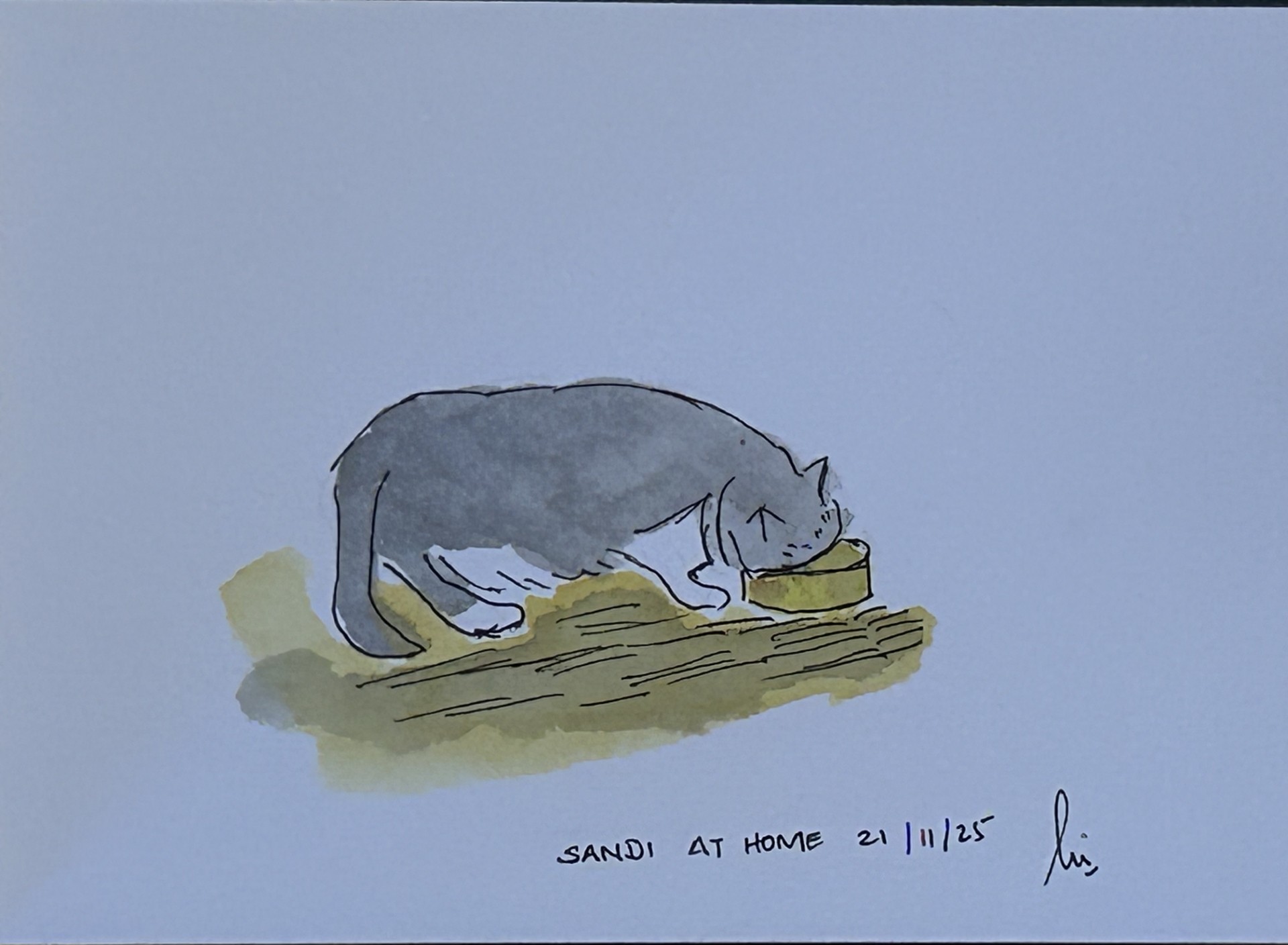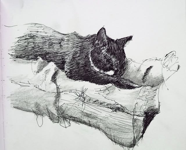 I drew this one of her some time ago in ink in a little drawing I call ‘Urban Panther’. She loved climbing onto my lap and sleeping there beyond the time my legs had themselves fallen asleep.