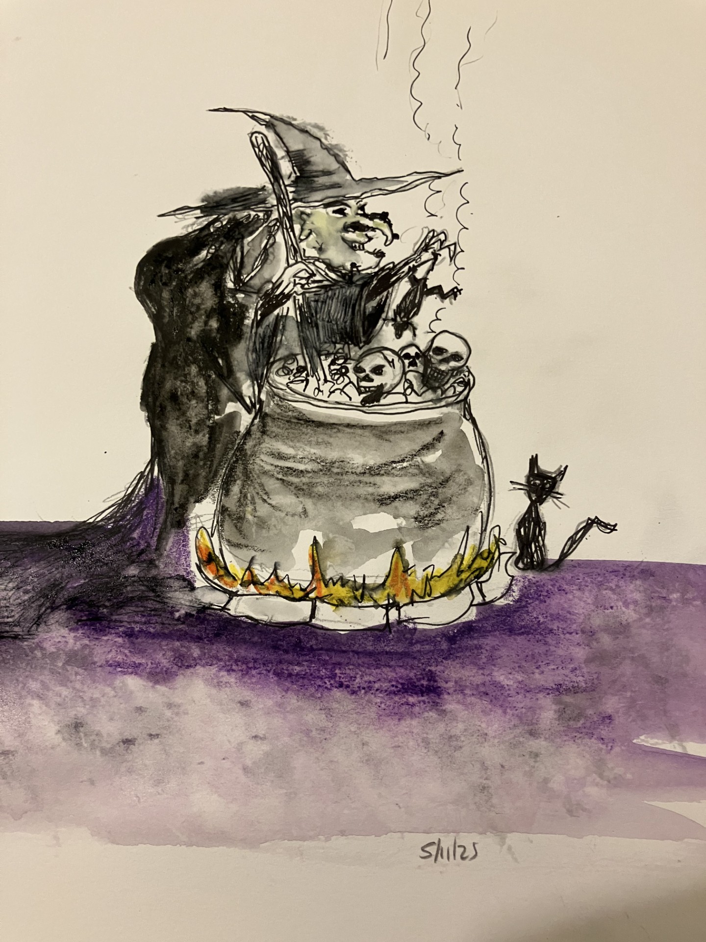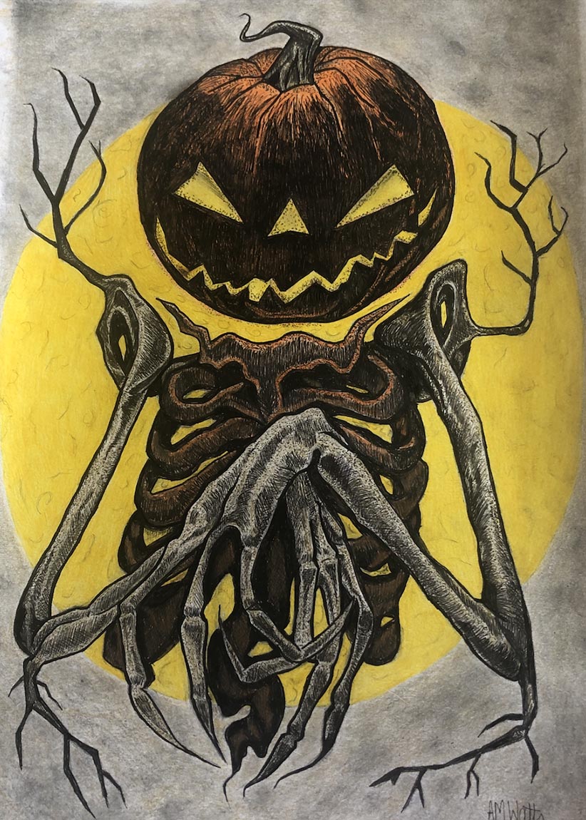 No. 4: Halloween Skeleton (pastels, fineliners)