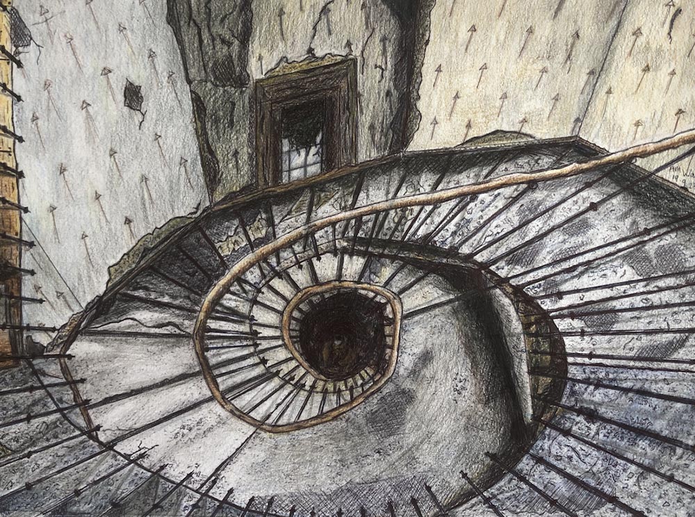 No. 2: Dilapidated Stairs (pencils, fineliners)