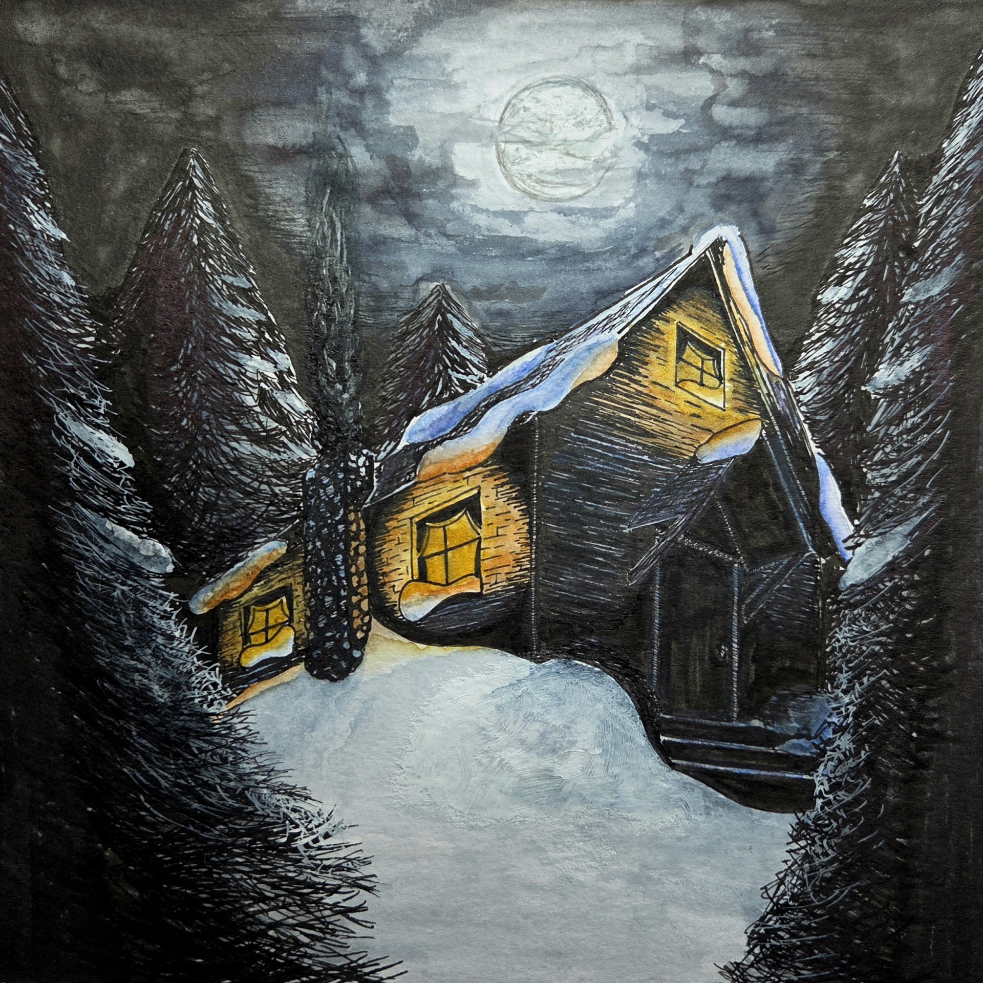 Here’s a submission for the snowy cottage prompt of the festive art challenge. I’ve just started the illustration course so I used this as an opportunity to review some of the unit 1 concepts, e.g. perspective, light/shadow, texture, colour. It’s mixed media with pens, watercolour, and ink.