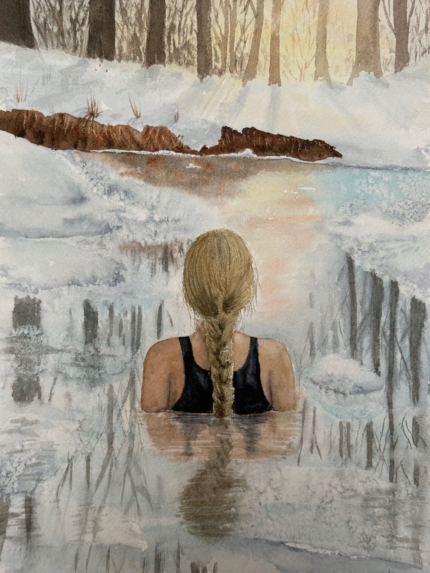 My artwork shows my wish to start with a new experience, to go into an area, which is not comfortable and well known, it means, that I have to spring in the cold to learn something new, to feel in a different way and challenge myself to leave the ways I know. Thank you for the idea – I wouldn‘t thought about it without this Challenge.