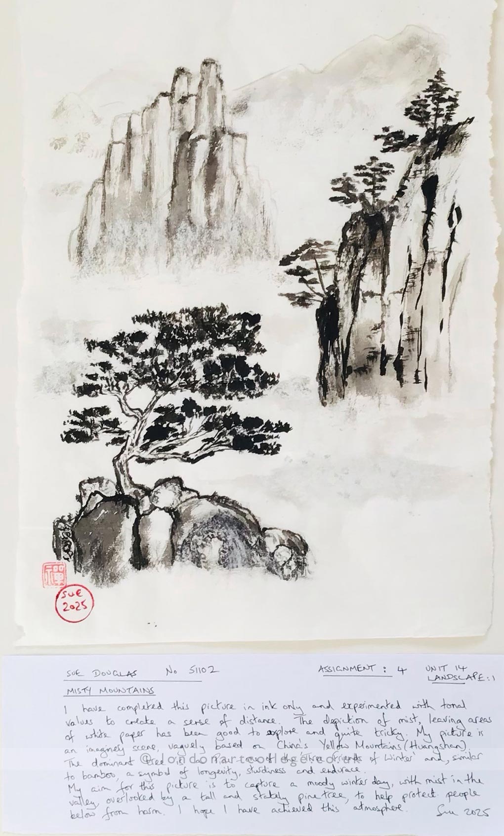Having completed the Diploma in Drawing and Painting with the London Art College I wanted to do something very different and was immediately attracted to the Chinese Brush Painting Certificate course which introduces students to this traditional ancient art form. Once I had the specialist brushes, ink and papers I began to appreciate the mindfulness of the process, from grinding ink to the control of the brush and strokes.