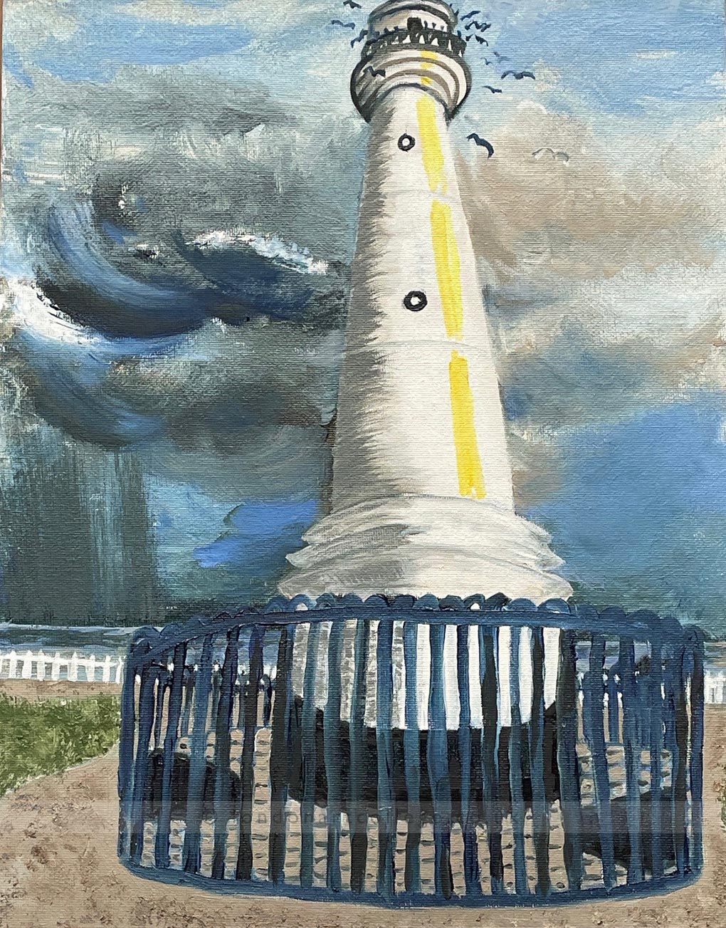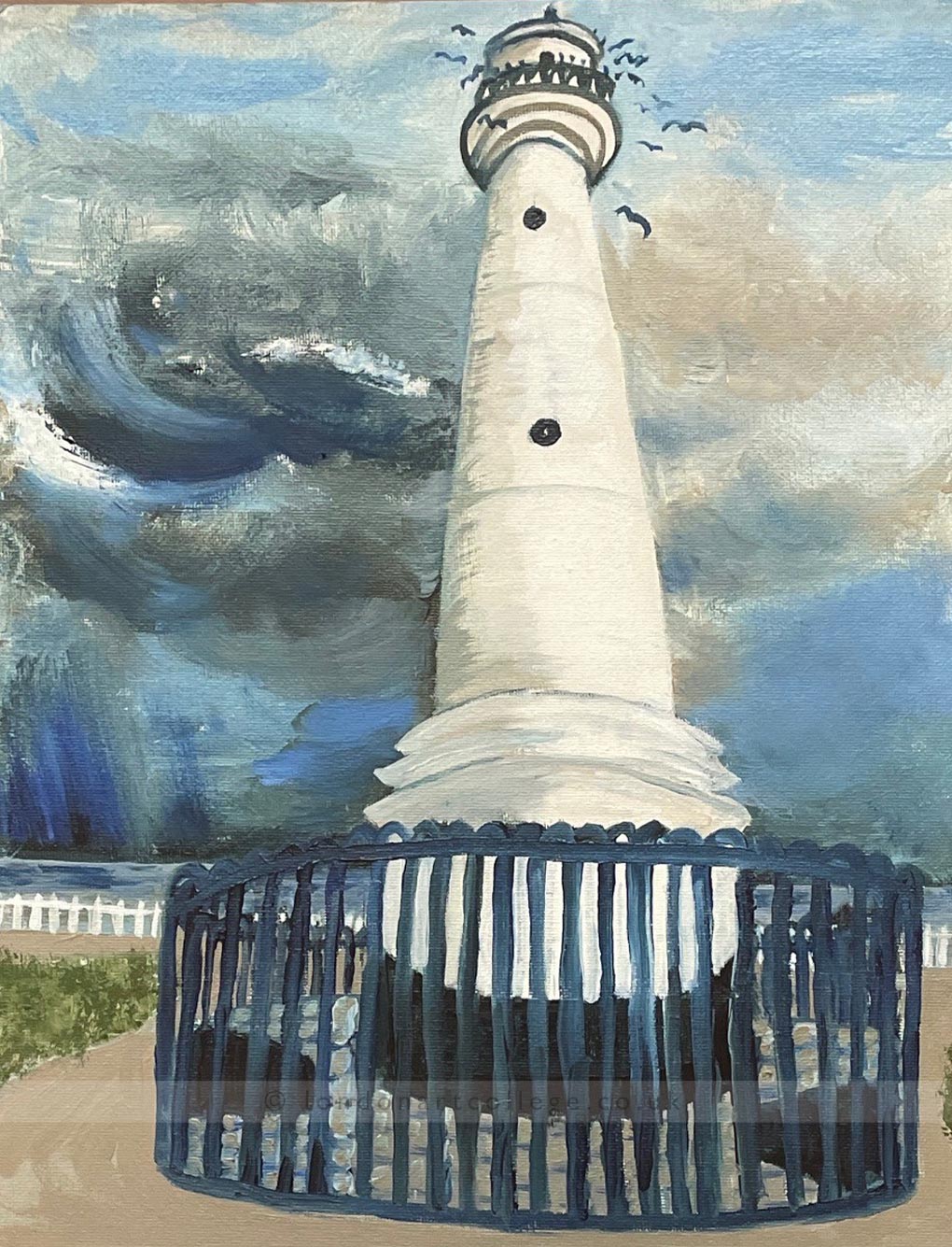 Anne has also explored a variety of subjects, from still life and interiors to more expressive, abstract work. This willingness to experiment is an important part of developing confidence with oils. In pieces such as the lighthouse study, there is a clear focus on structure, light, and atmosphere, while other works show freer mark-making and a more expressive use of paint.
