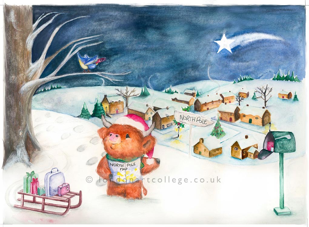 London Art College student Rebecca Sullivan has recently completed the Illustrating Children’s Books Diploma Course, achieving a very well deserved distinction, and it is a real pleasure to showcase her outstanding work on the blog. Rebecca’s illustrations demonstrate an exceptional level of imagination, storytelling, and technical skill. From charming, whimsical scenes to beautifully observed pen and ink illustrations, her work shows both versatility and a confident command of different illustrative styles. Her character design is particularly strong, with expressive figures that feel full of personality and narrative intent. The festive illustration featuring the cow is utterly delightful, while her detailed black and white work reveals a meticulous approach and excellent control of line. Rebecca’s final body of work is imaginative, accomplished, and a joy to explore, making this distinction thoroughly earned.