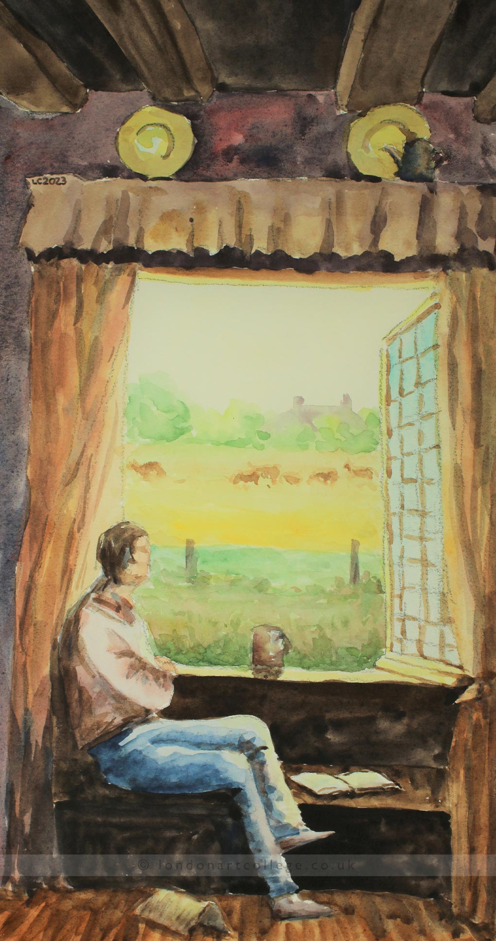 Luis shows a growing confidence in his paintings and his watercolour techniques are beautiful and delicate. The interior scenes looking out through windows are particularly effective, while the landscape studies demonstrate a sensitive handling of tone and space.