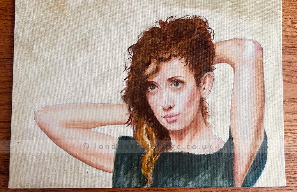 The full figure beach painting, featuring her friend in Conwy, is full of personality. The relaxed pose and bright coastal setting give the piece a lovely sense of warmth and character. It is clear that Ganna has enjoyed telling a story through her work, rather than simply copying a reference.