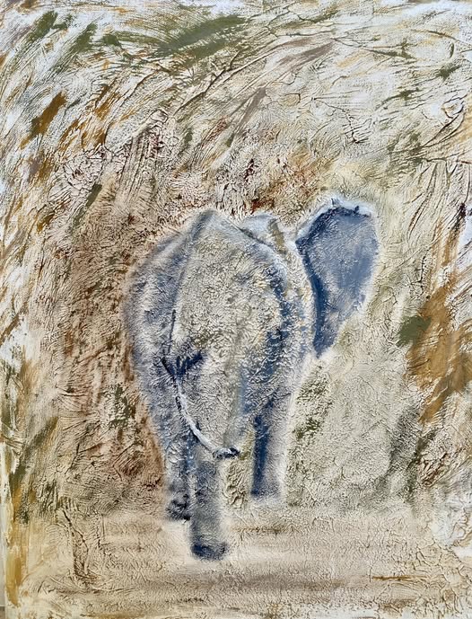 Weekend challenge. Wild animals. Acrylic on textured canvas. I wanted to convey how sneakily well camouflaged such a large creature can be in the bushes!