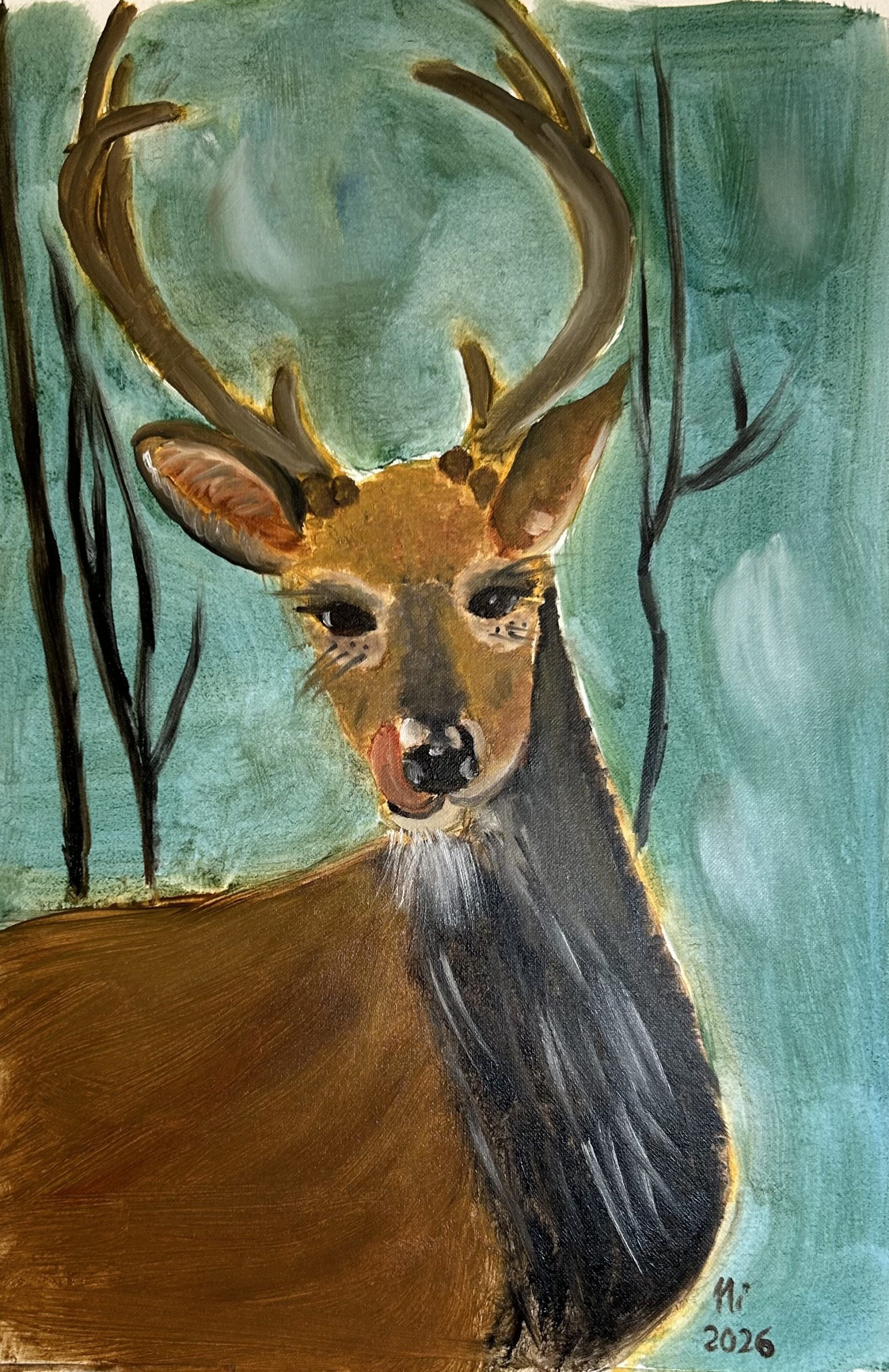Deer created with oils on paper.